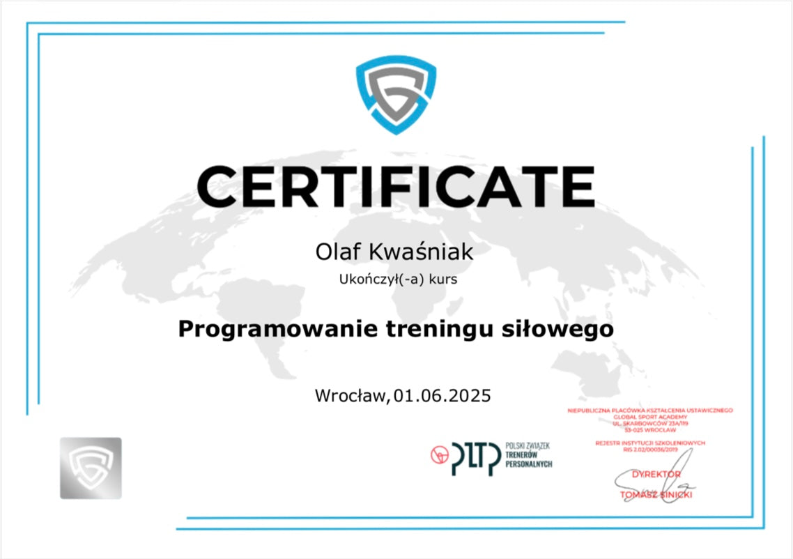 Zaczynałem jako młody, szczupły chłopak, który od zawsze chciał dobrze wyglądać i lepiej czuć się w swoim ciele. Od tamtej pory rozpocząłem swoją przygodę z treningami i poszerzaniem swojej wiedzy na ten temat. Od początku trenowałem sam i popełniałem masę błędów ucząc się na nich. Obejrzałem setki filmików na YouTube, uczestniczyłem w szkoleniach, webinarach i skończyłem kilka kursów abym mógł być teraz tu gdzie jestem. Aktualnie jestem trójboistą regularnie startującym w zawodach i robię wyniki, o których kiedyś nawet nie marzyłem. W dalszym ciągu wzbogacam swoją wiedzę, aby być coraz lepszym trenerem.